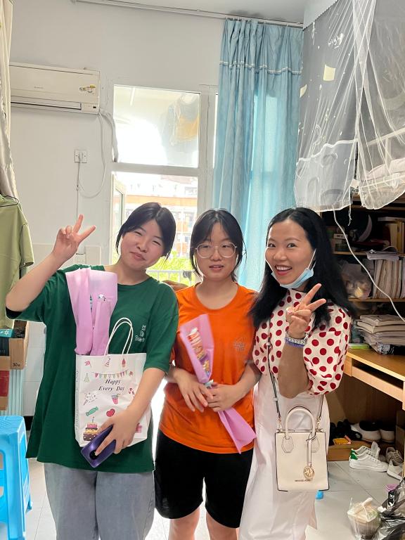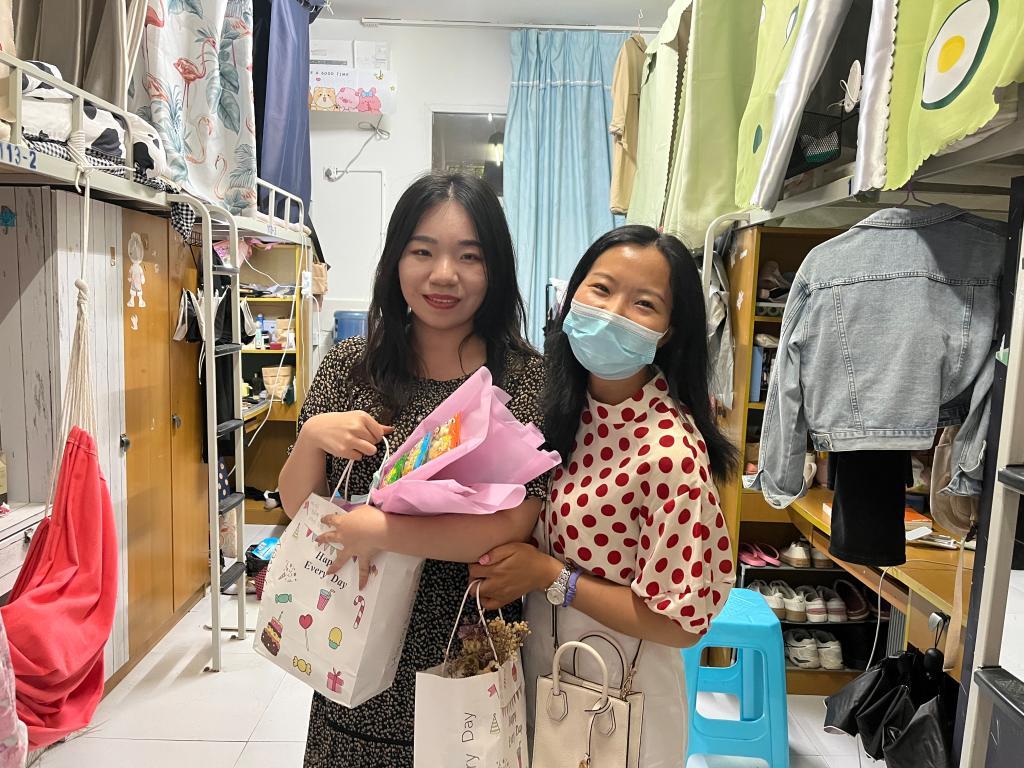 6.1当天晚上,张红老师首先在花果书院1号楼503、504、505三个寝室,为本组大一的同学们送去了惊喜,同学们纷纷感受到了“被宠爱”的快乐。