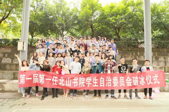 北山书院学生自治委员会第一届第一任干部干事破冰活动,于2017年10月14日在北山学生活动区举行。此次破冰活动,恰逢十九大召开前夕,大时代呼唤更加响亮的主旋律,大发展培育更加深厚的文化软实力。我们积极向同学们宣传党的发展历程,以分享我与共青团的故事为开端,向大家介绍十九大召开的目的和意义。国和家,都是我们血液里流淌的根本,北山破冰仪式把爱国教育放在首位,更把“家文化”展现给同学们。让我们爱好书院小家,为崛起的大中国奋斗终身。