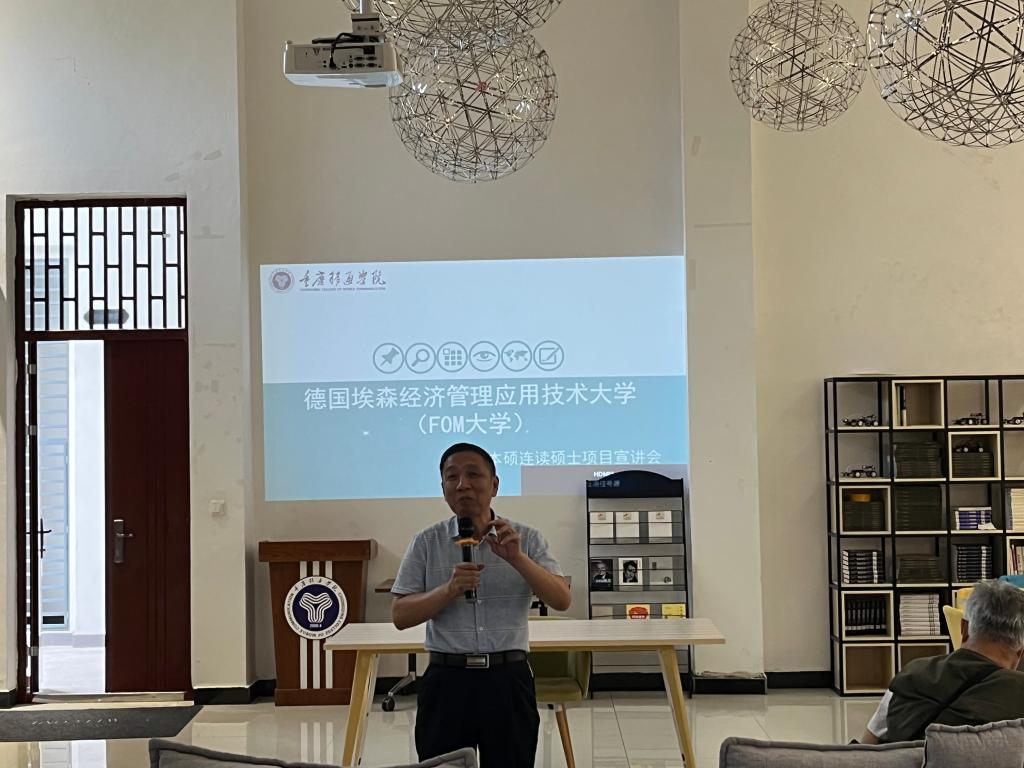 淬炼国际商学院国际专员苏婷老师介绍了埃森经济管理应用技术大学(FOM)本硕连读项目。淬炼国际商学院聚焦打造有信息产业背景、国际化商科思维和视野、社会认可度高的知名国际商科教育平台,通过与国外高校开展国际办学合作,引进国外优质教育资源,为社会培养和造就具有国际视野和胸怀、具备跨文化管理思维和技能、敢于担当和作为的高素质、国际化商科人才。学院与德国最大的经管类高校埃森经济管理应用技术大学展开深入合作,共开设会计与金融管理(Accounting & Financial Management)、国际市场营销(International Management)两个专业,通过创新人才培养模式,成立“德国课程研究中心”、“专家委员会”,在专业发展、课程共建、师资培训、交流互访、交换学习、产教融合、国际论坛等方面持续发力,让同学们享受丰富的国际化商科教育资源,并获得更优质的跨文化成长体验。
