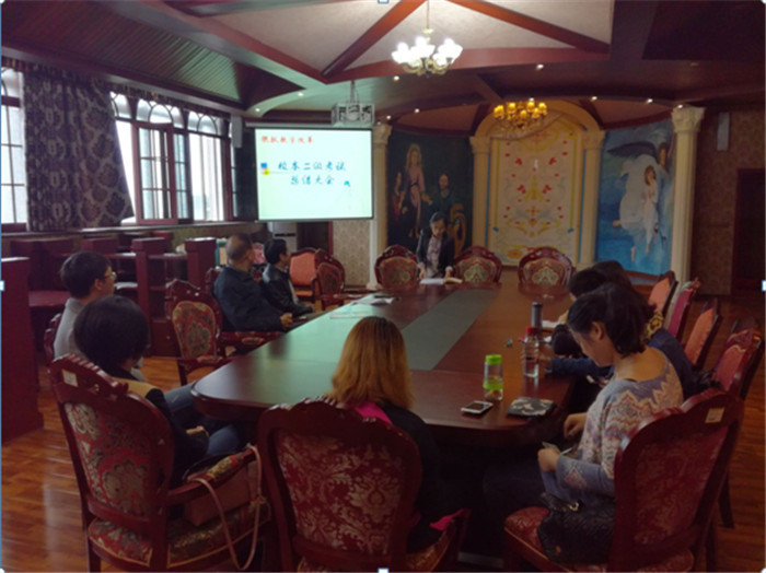 为使英语专业校级英语二本考试工作顺利落实,外语系英语专业教研室全体教师早在去年上半年就着手相关筹备工作。从举行试题开发和设计研讨会开始,就“何为校本二级考试”、“考试大纲的板块设置是否合理”、“每个板块的题型设置是否合理”、“样题难度如何把握”以及首套样题的制作团队人员确定等进行了反复商讨;在校本二级考试大纲和样题均已出炉的基础上,又于去年6月召开了校本二级考试推进会议,再次围绕样题题型板块设计、样题题型难度把握及出卷的具体分工等几个问题展开讨论,反复斟酌推敲;前期筹备分工基本落实后,教研室再次于10月召开2016级英语专业课程教学研讨会,以校本二级考试为基点,围绕 “学生英语现实水平评估”、“学生英语学习过程强化”、“专业课程学生自主学习方案设计”等议题展开讨论。与会老师们围绕校本二级考试,延伸交流了各自课程教学情况和学生学习情况,并就如何将校本二级考试跟专业课程常规教学结合,特别是如何以校本二级考试激发学生学习动机提出了各自的看法和建议。如今,考试顺利结束,英语专业教研室的各位老师再次碰头,围绕试题难度的合理度、课堂教学、学生管理问题等对考试结果进行了深入分析,并就之后教学过程中该从哪些方面做针对性的补充和培训展开探讨。