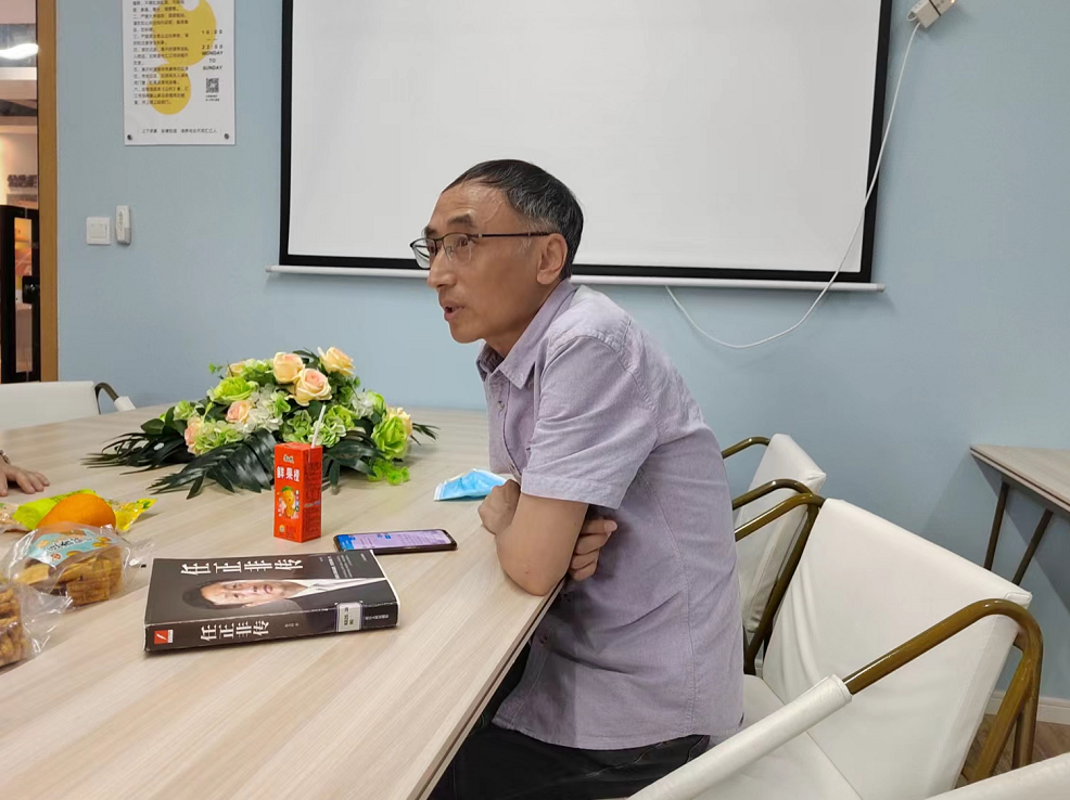 分享会首先由董道进老师发言。董老师对任正非的个人经历、奋斗历程感触特别深,任正非读完大学后,应征入伍,成为一名基建工程兵。之后又退伍,成为国企员工,又因工作不顺利,进行集资创立华为公司。董老师曾在企业工作多年,从任正非的奋斗经历联想到自己的成长经历,董老师谈到过去的经历不会白费,它一定会在将来的某个时候为你创造价值,虽然自己才刚从事大学教师这个职业,但他相信自己能够在这个行业里努力奋斗成为一名较高造诣的老师。