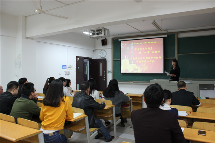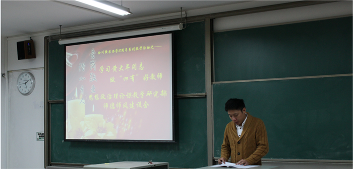 为深入贯彻习近平总书记系列重要讲话精神,根据《思政教学部关于合川校区办学10周年(建校17周年)系列教学活动工作方案》的安排,为建设一支高素质的教师队伍,思政教学部于10月11日17时,在1310教师举行了学习黄大年同志先进事迹师德师风建设会,会议由教学部主任邓燕主持,思政教学部教师全体参加。