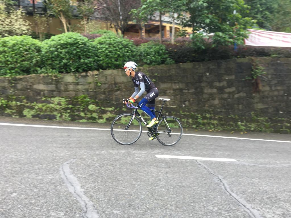 (骑行者奋力攀骑去往钓鱼城途中的石全寺陡坡)