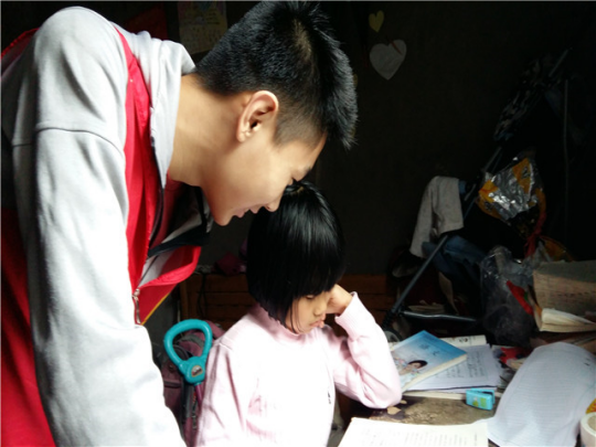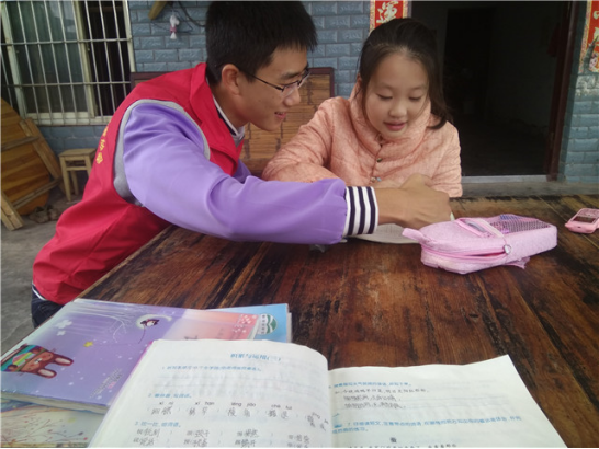 首先,我们来到了郑秋实小朋友的家。他是我们的重点关注对象:父母离异,父亲常年在外打工挣钱,从小和爷爷奶奶、弟弟相依为命。当我们来到他的家中,他很开心地向我们问好,并且主动拿出作业给我们检查。在这之后,他向我们询问起了大学的生活:大学有乒乓球吗?大学有作业吗?大学的生活好不好?从他的眼神里,我们看到了他对大学生活的向往,看到了他对学习的渴望......