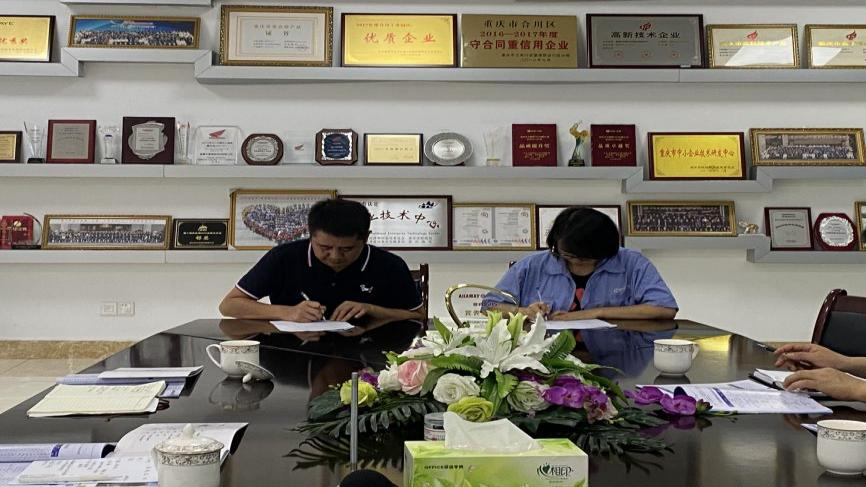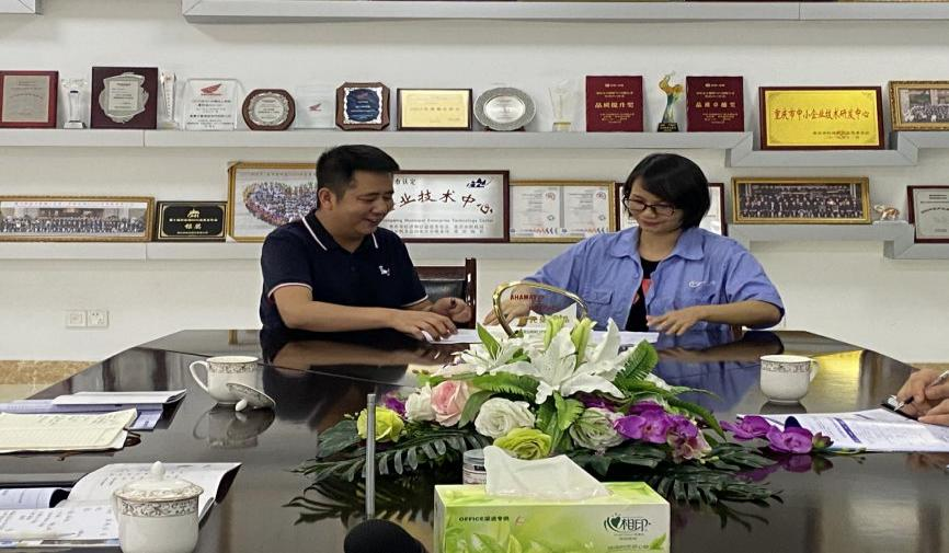 随后,我校校长助理陈仲华和重庆永丰精气汽车配件有限公司分管副总陈志惠签订了校企合作协议书。