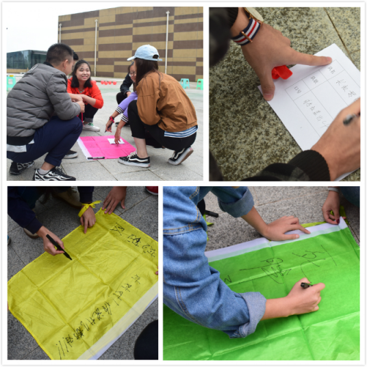 活动正式开始,首先对成员们进行分组通过抽彩带的方式,将大家分为红、蓝、粉、绿、黄共五队。每个小组在规定的时间内,共同完成本组的文化建设并进行文化展示。手腕的丝带飘飘,心中团队的归属感油然而生。