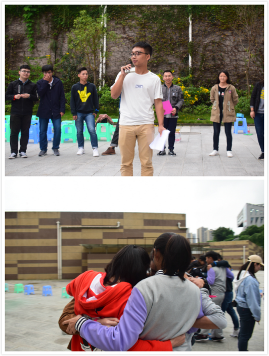 “五毛一块,小钱大爱”所有队员打乱分散站队,男生代表一块,女生代表五毛,主持人会随机喊出一个数额,所有队员自由组合,组合后与主持人口中数额相同为成功。游戏里,大家消除了陌生感和距离感,团队永远留着最温暖的拥抱给努力学习、工作的你。