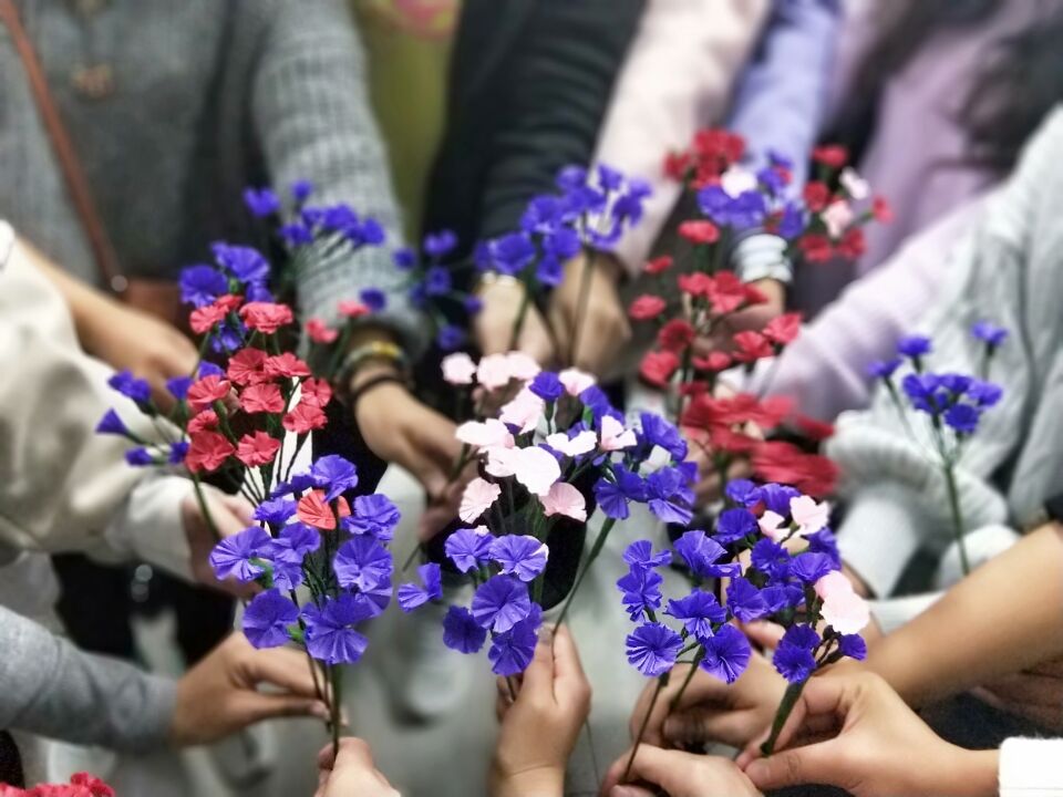 最终,每个社员手中都有了一束自己制作的满天星,当所有的花都聚在一起,便成就了一片星海,它承载着欢喜和希望。也许一束满天星并不起眼,但当所有的满天星都聚在一起时,当它变成了它们,独特的韵味会油然而生——就像萤火虫,一只萤火虫只会发出微弱的光,然而无数的萤火虫聚在一起时能发出耀眼的光芒。