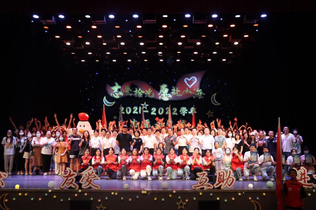 图为重庆移通学院2021—2022学年“优秀青年志愿者协会”、“志愿服务技能大赛优秀组织单位”颁奖照片