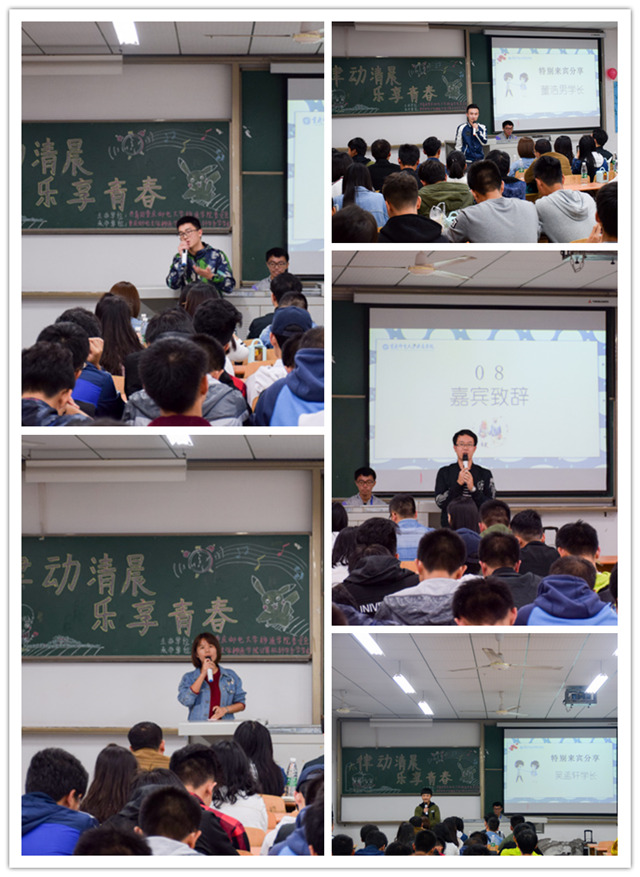 在主持人的引导下,参与分享会的同学们在倾听故事之余又进行了打电话抢奖品、欣赏创意节目《盒饭的诱惑》等活动,现场活动气氛多次达到高潮。而负责运营的工作人员们也站到了台前,分享起属于他们的好闹钟故事。外联部旷才兴部长讲起了每日免费早餐背后的不易,反反复复地与商家沟通、交流,只为同学们提供更好的资源;来来回回地奔波在店铺与学校之间,只为早起的组合能拿到优质的早餐;劳神费力只为得到同学们最真实的反馈,只为更好地服务于活动。董浩男同学、吴孟轩同学则作为过来人讲起了承办方美宣部的故事:活动的成功离不开每一个工作人员的起早贪黑、辛勤付出。每年都会有移通好闹钟,一路以来,人在成长,活动也在成长,相信以后的每届好闹钟也将越办越好!