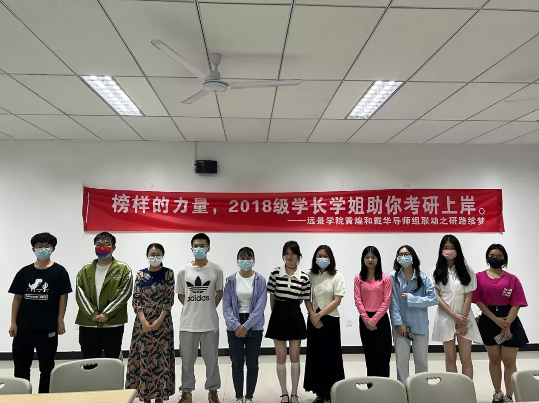 为进一步激发远景学院学子的考研热情,让同学们了解更多考研资讯,从而明确自己的考研目标,同时激励在校大学生努力学习、励志成才,远景学院戴华与黄煌老师邀请到2018级考研成功上岸的三名优秀学生于2022年5月22日晚上7点在第九教学楼9112室给导师组同学们分享考研经验,并为大家答疑解惑。本次导师会通过“线下+线上直播”同步形式举行,分享会上学长学姐们根据自己的备考经历,详细介绍了各自的考研经验,干货满满。