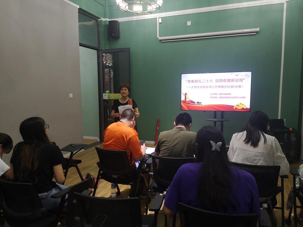 为深入贯彻落实习近平总书记关于思政课建设的重要论述及指示批示精神,坚持不懈用习近平新时代中国特色社会主义思想铸魂育人,充分发挥高校思政课作为立德树人关键课程作用,引导广大青年学生衷心拥护“两个确立”、忠诚践行“两个维护”,以实际行动迎接党的二十大胜利召开。6月8日下午,马克思主义学院联合花果书院在花果书院多功能室举办了重庆移通学院第四届大学生讲思政课比赛决赛,马克思主义学院李阳、金光美、李佩、曾林、秦瑾等五位教师担任了本次活动评委。
