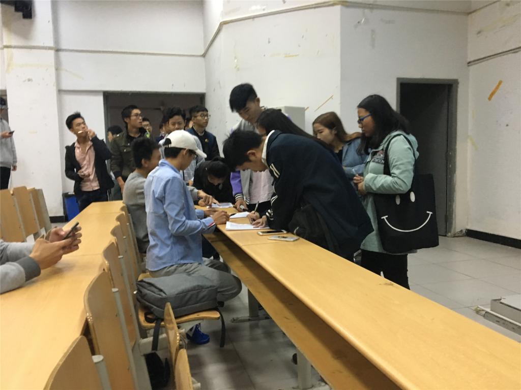 (铁人俱乐部社员们签到入场参加知识竞赛)