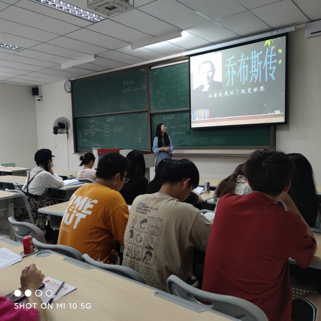 6月2日,郑媛媛老师与2019级大数据管理与应用1-2班的同学们阅读了《乔布斯传》的部分片段,并邀请部分同学进行对各个章节进行朗诵、分享。在这次阅读分享中,同学们对乔布斯这样一个天才人物的理解更立体,同时也被他的对生命的意义的诠释深深打动。