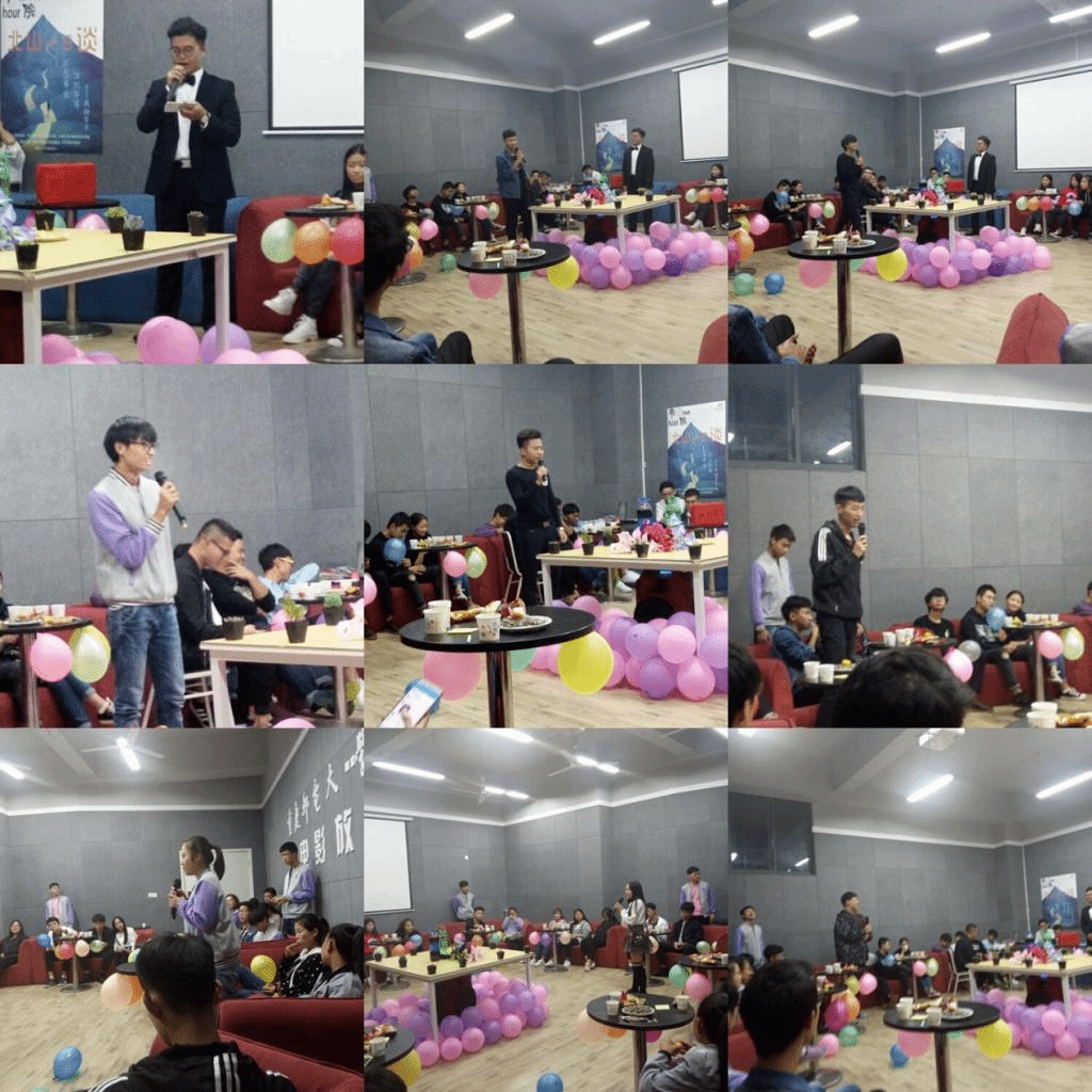 活动虽然在晚上七点才准备正式开始,不过北山书院的全体干部及干事都热情高涨,希望能把北山一小时做好做响。所以在中午一点的时候就开始布置场地,留足了时间。因为是第一次办北山十日谈,各位工作人员都认为需要彩排一下。于是在北山书院的全体干部干事的协作下进行了多次彩排。各位干事们也集体发动自己的小脑瓜,想活动中可能有哪些小细节没注意到。布置场地是辛苦的,也是快乐的。正是应了那句话:人在一起叫聚会,心在一起叫团队。在这一刻,北山书院的全体干部干事感受到了北山之家的温暖。