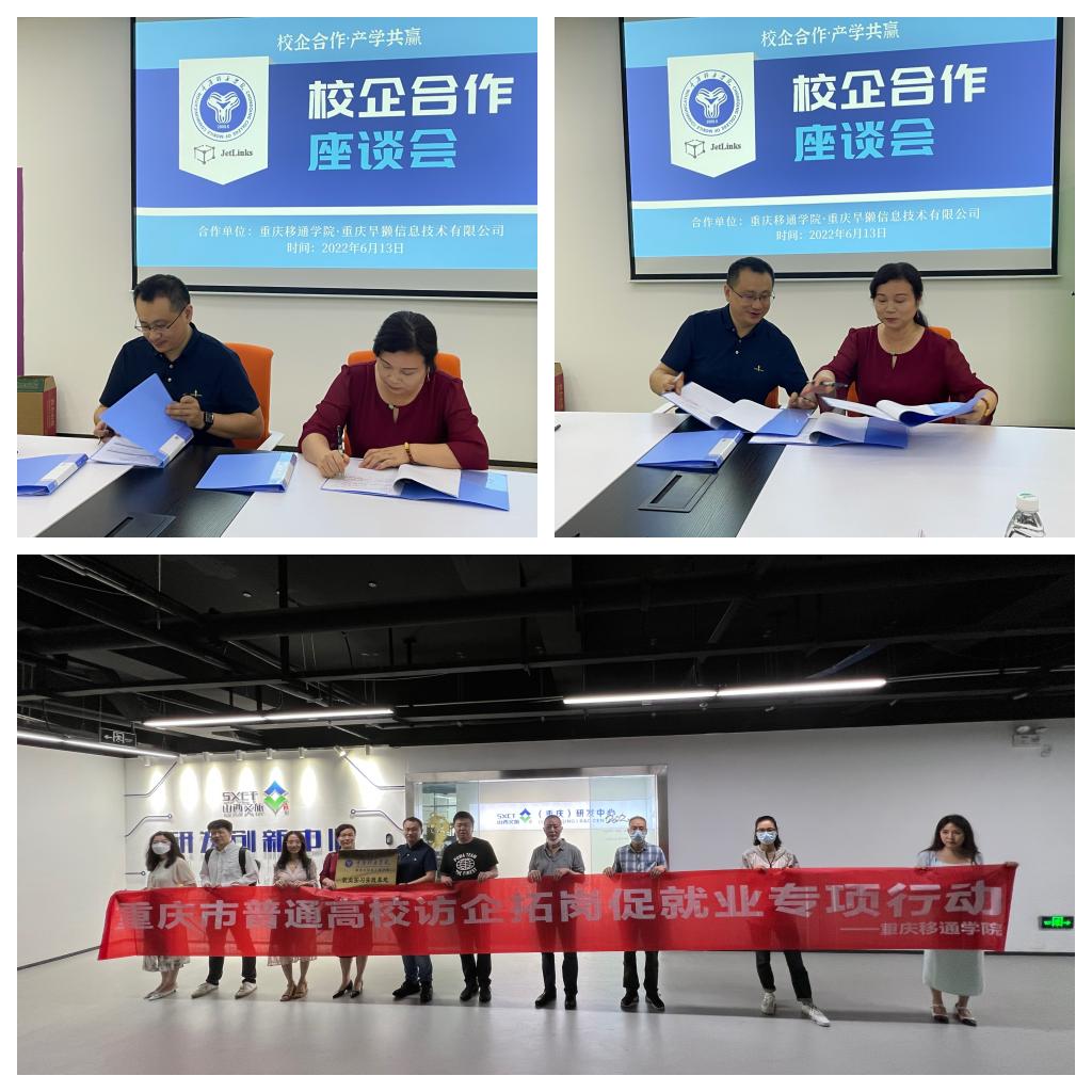 会议最后,在与会人员的见证下,校企双方领导共同签订校企合作协议,同时为重庆移通学院通信与信息工程学院就业实习实践基地揭牌,并合影留恋。