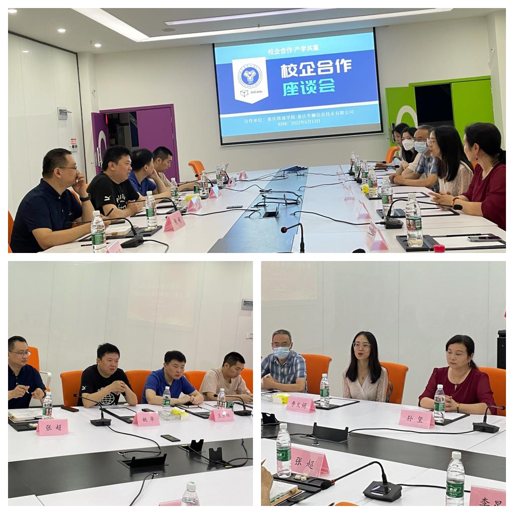 在重庆旱獭信息技术有限公司总经理李星星的陪同下,一行人首先参观了公司的技术部门,李星星总经理向孙玺副校长和李文娟院长介绍了公司安全系统监控服务、人工智能基础资源与技术平台、人工智能基础软件开发、人工智能应用软件开发等项目。参观结束后,双方进行了座谈交流并举办了校企合作签约仪式。
