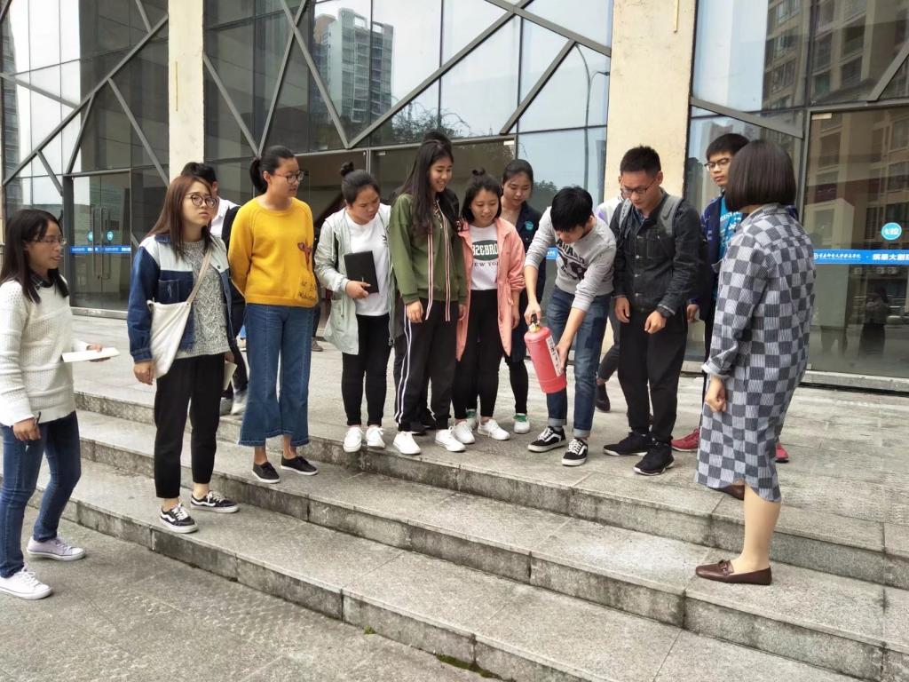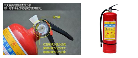 说完消防栓,接着就是灭火器的气压检查以及使用方法展示。同学们都跃跃欲试,但即使微小的次序变化,也决定了是否正确使用的关键。“正常的灭火器只要指针在绿色的位置,就没有问题。到了红色位置,说明压力减低,会影响到你的使用效果,甚至不能使用。火灾发生的时候,在就近的区域取出经过检测合格的灭火器,拔下保险栓,然后握住软管,接着对准火焰根部按下手柄喷射灭火”。