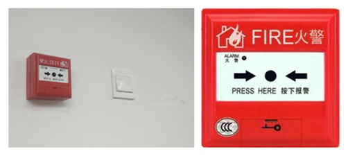 接下来对剧场内的消防系统进行了介绍。当发生火灾时,安装在剧场内部的报警系统能传送求救信号。“可通过装于走廊、楼梯口等处的手动报警开关进行人工报警。手动报警开关装于金属盒内的按键,一般将金属盒嵌入墙内,外露红色外框的保护罩。人工确认火灾后,敲破保护罩,将键按下,此时,一方面就近的报警设备如火警讯响器、火警电铃动作,另一方面手动信号还送到区域报警器,发出火灾警报。”