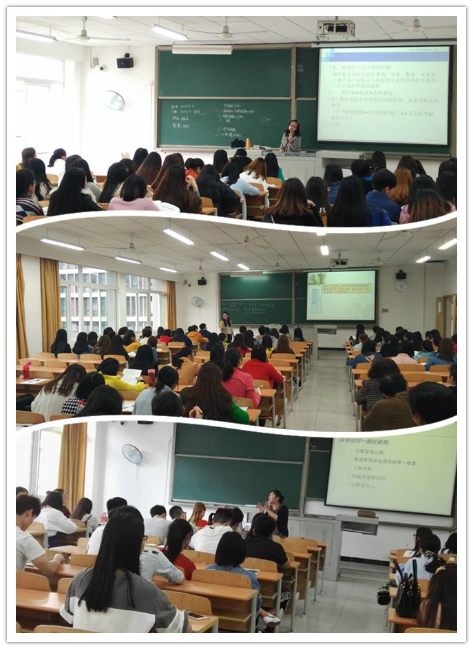 任涛老师讲授的《税法》,选择近期税制改革的重点税种——增值税作为教学内容,联系大三学生参与初级会计师考试的情况,深入浅出,设疑提问,将全体学生深深地吸引在课堂上。