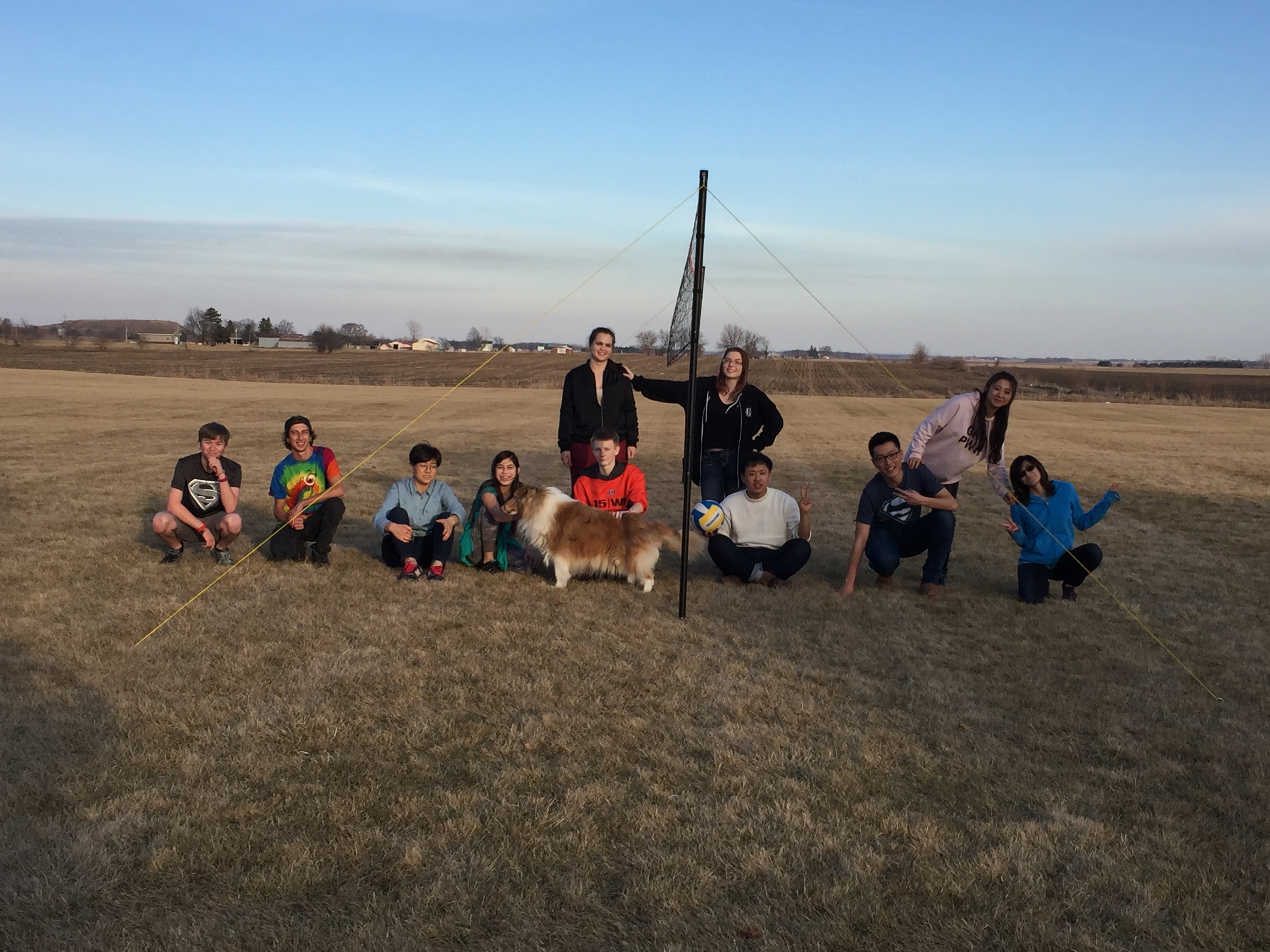 告别了教堂我们就前往了他们家,他们住的小镇离我们学校所在的迪卡尔布镇不过20分钟的路程。到了他们家所在的小镇我才发现两个小镇都有一个共同之处就是没有什么高楼大厦,迪卡尔布最高的楼就是我们住的宿舍楼,后来通过交流我才得知除了一些大的城市是高楼林立,而一些小的城镇大多数的人们都是独门独户居住,基本上都是带地下室带车库两三层的小楼,院子也是大的吓人,所以后面男主人一言不合就给我们在院子里支了个排球架我反而不惊奇了,只能感叹美国人真爱运动。