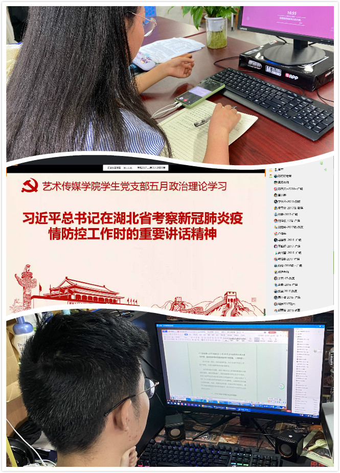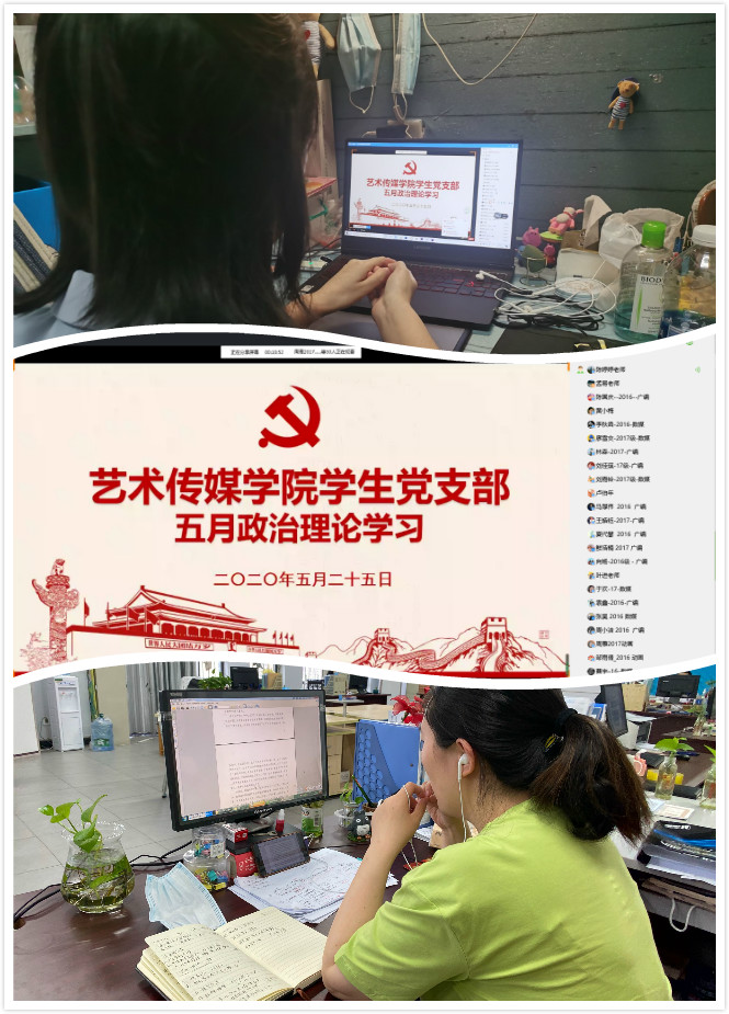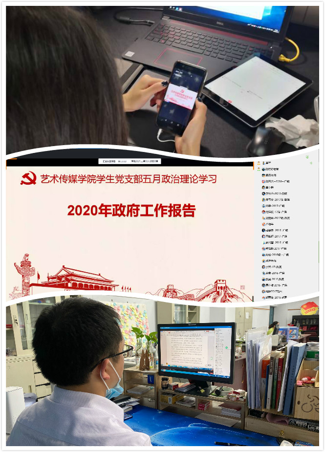 为进一步加强支部党员政治教育,深入学习贯彻习近平新时代中国特色社会主义思想,鼓励师生党员及时关注时政热点,艺术传媒学院学生党支部于2020年5月25日下午,以青年党员听得进、学得懂、记得住的方式方法,开展了以“关注时政热点、争做时代先锋”为主题的政治理论学习。会议由支部组织委员黄小玲老师主持,支部全体党员参加此次线上学习活动。