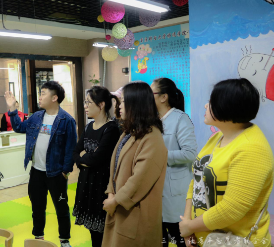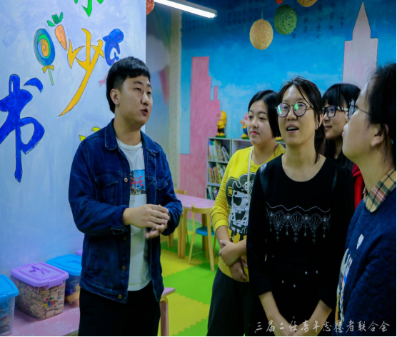 缤果城少儿公益图书馆作为合川区唯一一家专为少儿开设的公益性阅读中心,秉承着“呵护儿童健康成长,放飞少儿美好梦想”的理念,在提升少儿阅读学习能力的同时也注重综合素质的全方位发展。青年志愿者联合会主席叶思路认真的向老师们介绍缤果城少儿图书馆的成立背景及发展历史,加深老师对这一特殊市民学校的了解。
