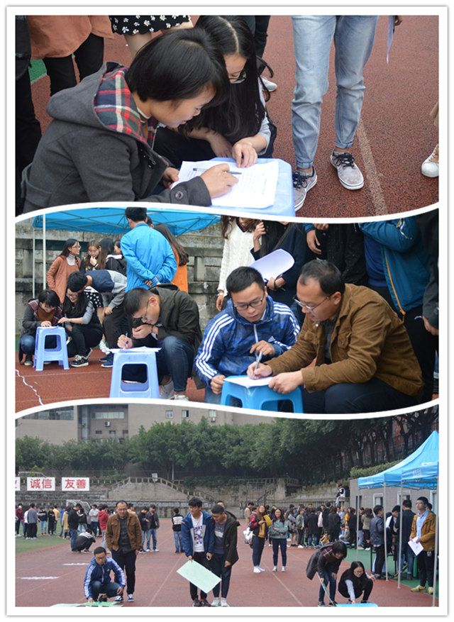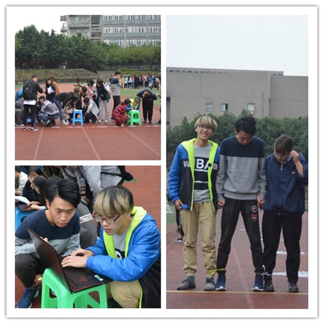 似乎是被跑道上同学们欢笑中的美好氛围所打动,老师们也参与到了游戏中。不得不说在“搭桥过河”的环节中谢银平老师和阙小梅老师展现出了女生的灵活性,一溜烟儿地就到达了终点,一旁的小e也看得目瞪口呆。而在另一侧,王焱老师和马喆老师则向大家展示了什么是大鹏展翅,蛟龙出水。也许两位老师曾经秘密选修了武术专业吧。最正常的一组就是严谨的主席团们了,一丝不苟的进行着各个项目。在一片欢笑中学习了计算机知识,收获了不一样的体验。