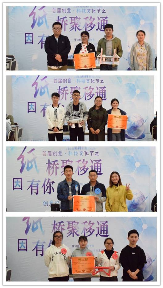 至此,首届创意·科技文化节子活动之第五届“纸因有你·桥聚移通”创意纸桥设计大赛圆满结束!本次比赛,涌现了大量的优秀选手并诞生了许多优秀作品,期待往后的比赛能够给我校师生带来更具冲击力的视觉盛宴!
