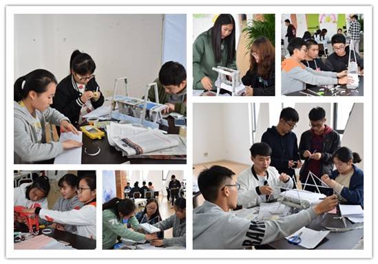 经过激烈的初赛选拔,最终有10组选手进入了此次决赛。主持人宣布比赛开始,各组队员有序进入赛场。此次决赛要求选手在30分钟内将自己的半成品加工为成品纸桥。选手的作品介绍是否准确、纸桥造型是否美观以及纸桥的承重性能是否合格,将决定他们的最终成绩的高低。每组选手的作品风格形式各异,他们采用不同的思路,专心致志搭建他们的纸桥。