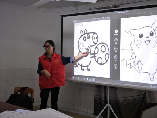 万众期待的绘画小课堂终于开讲啦!指尖的笔触缓缓地盛开,出现在屏幕中的卡通人物,通过志愿者的巧手,栩栩如生地在纸上逐渐定格。小朋友们边看边迫不及待的拿起画笔,进行自己的绘画作品制作。有的小朋友经过多次临摹后已经画的神似了,有的小朋友干脆放弃临摹,转头开始了自我创作。这是艺术与现实的碰撞,用画笔勾勒的梦想,已缓缓长大。