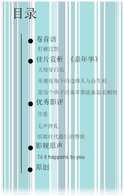 《光影絮语》电子杂志由我校电影协会组织编辑,每学期推出2-3辑,至今已成功推出10期。杂志含全球最新部分佳片赏析、移通学子影评评析、优秀电影佳片推荐等主要影视鉴赏、评析内容,是影协评析电影、评判交流的思想阵地。