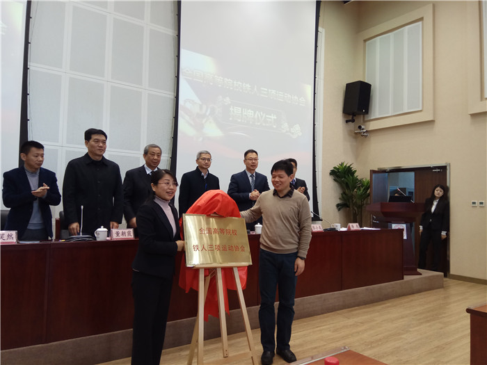 1月3日,全国高等院校铁人三项运动协会成立大会在中国石油大学(北京)召开,全国铁人三项运动协会秘书长陈笑然、北京市大学生体育协会主席杜松彭、中国石油大学副校长董朝霞出席会议并发表讲话,共有来自全国67所院校的100多名高校代表参加,我校作为首批会员单位正式加入该协会。