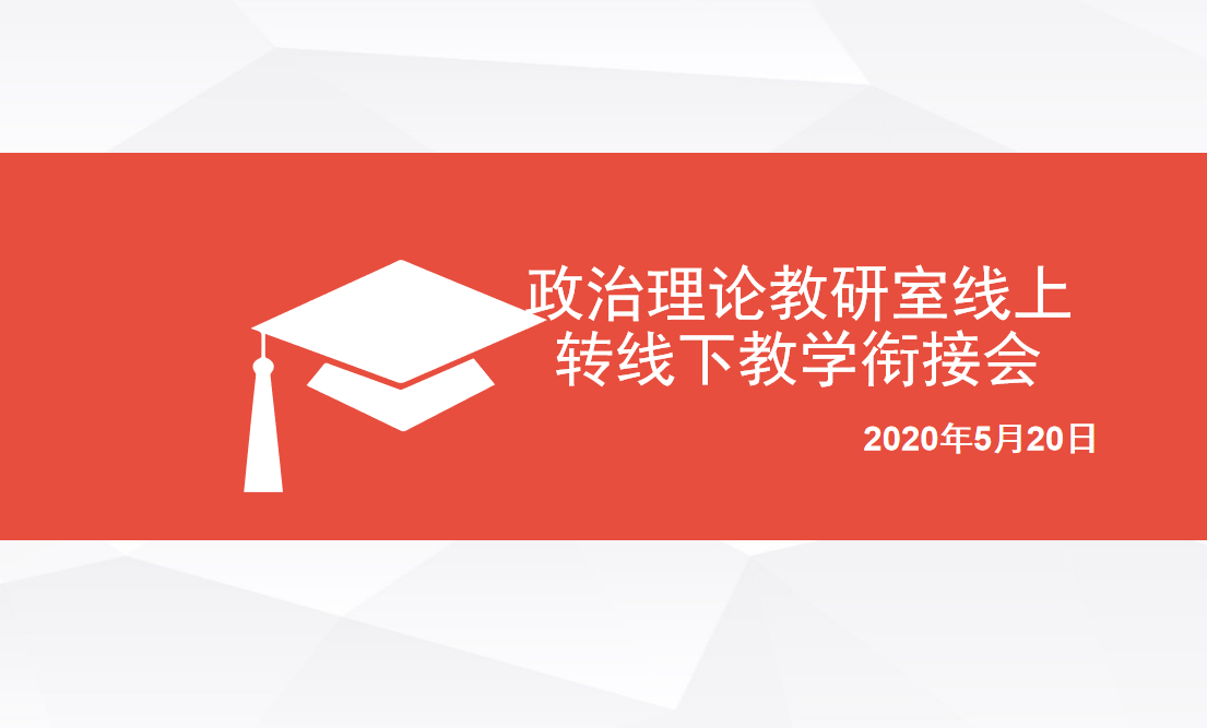 为保障开学复课线上线下教学秩序和质量,巩固线上教学成果,确保线上线下教学有效衔接,平稳过渡,圆满完成本学期教学工作,5月20日下午4时,思政教学部政治理论教研室全体教师相聚“云端”,进行了线上交流探讨。本次会议由政治理论教研室主任李阳主持。