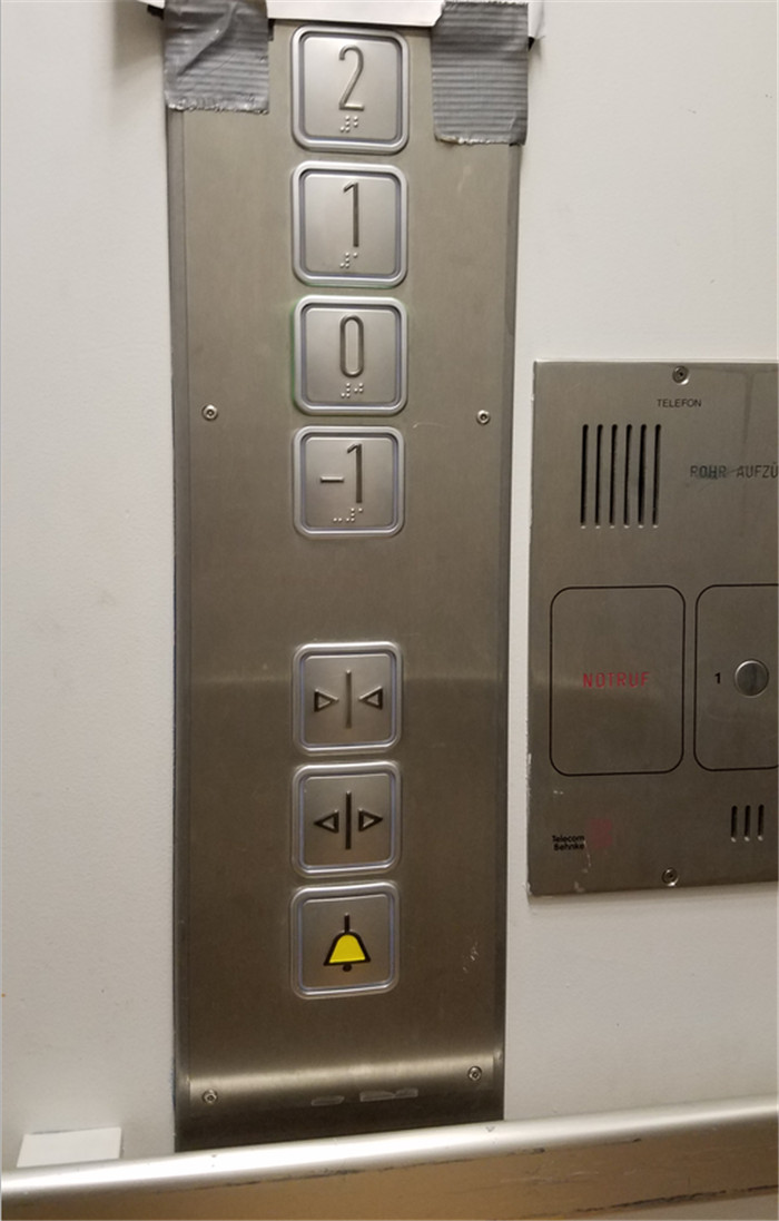 而其中一个小细节更让我印象极其深刻,底楼平层0按钮特意用绿色的胶皮把它套上,提醒人们注意,不要错把一楼当成平层。如此这般的细致,让人唏嘘。