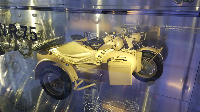 作为全球汽车制造业的顶级企业,宝马其实也是全球摩托车的顶级品牌之一。博物馆在布展设计上首先不是让你看宝马的轿车,而是摩托车。刚进入展区,就有一面玻璃墙,里面好几层,摆满了各式各样、各个年代的宝马摩托车,尤其是其中一款军灰色的双人摩托,让人一下子就想起二战电影中德国军人驾驶它在战场上飞驰的场景。这些摩托车放在展厅里,与其说是一辆辆摩托,倒不如说是一件件实实在在的、工艺精湛的艺术品,太精致了。
