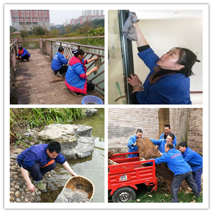 校园保洁战犹酣。环境卫生打扫,卫生死角整治,苔藓、小广告清除,垃圾桶清洗、游泳池清洗消毒,水景、化粪池清掏,整个校园的每一个角落都少不了他们的坚守。