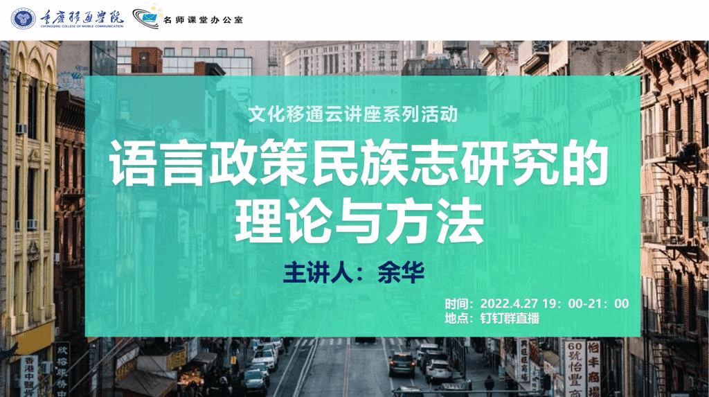 民族志对语言政策过程研究至关重要,其是语言研究一种重要视角与方法,可以揭示不同层级的语言政策在复杂的日常生活的不同语境中的阐释与实施过程。4月27日晚7点,文化移通开展线上研讨课,带来了上海外国语大学副教授、硕士生导师余华老师的《语言政策民族志研究的理论与方法》一讲,为同学们阐述民族志对语言政策的重要性。