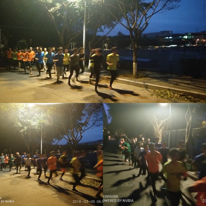 橘黄色的灯光透过校道旁的树丛照射到操场上,清晨的操场不在像往日一样安静,一群充满朝气的青年们的热身操悄悄的打破了这睡意朦胧的清晨,使得学校以操场开始有了活力。