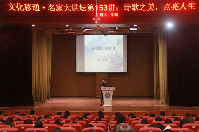 本次讲座的主题是《诗歌之美,点亮人生》。中国作为诗歌的国度,诗歌被文人墨客视为表达自己展现自己的方式,关于如何学习诗词文学,彭敏老师向我们分享了他自己的人生经历。