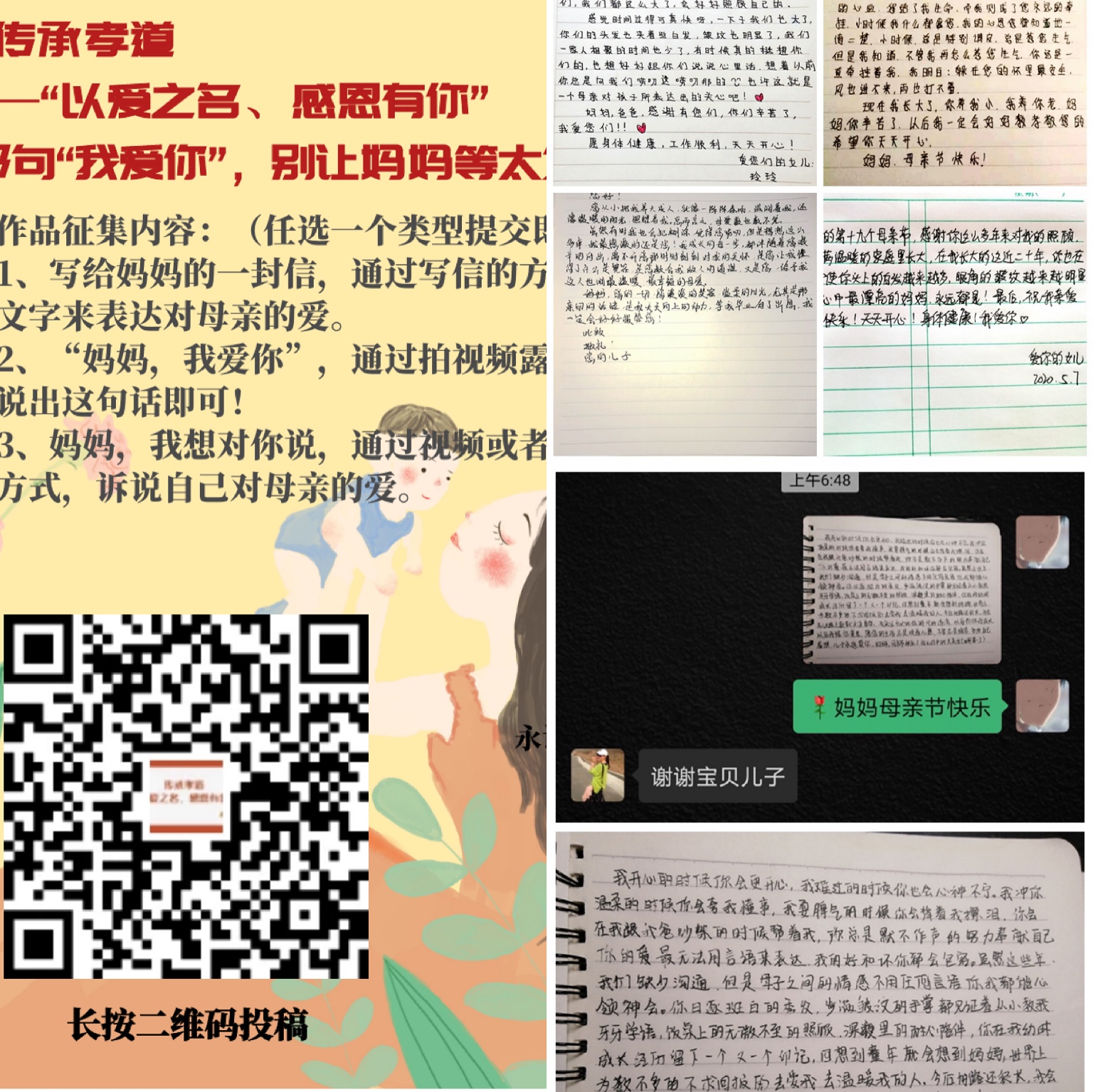 作为专业集中式书院,智能工程学院荷悦书院群一直为学生成长助力加油,从思想到技能,从意识引导到能力培养,夯实专业知识,做学生发展的加油站,致力于培养德智体美劳全面发展的新时代智工学子。5月,智能工程学院荷悦书院群利用时间结点,重在培养书院学子崇尚劳动、尊重劳动的习惯,同时呼吁学生常怀感恩之心,传承中华民族传统美德。分别开展“传承孝道——以爱之名、感恩有你”和行者公园·居家劳育——“点赞劳模、致敬劳动者”线上主题活动,手写祝福,传承孝道,记录劳模,弘扬社会正能量。