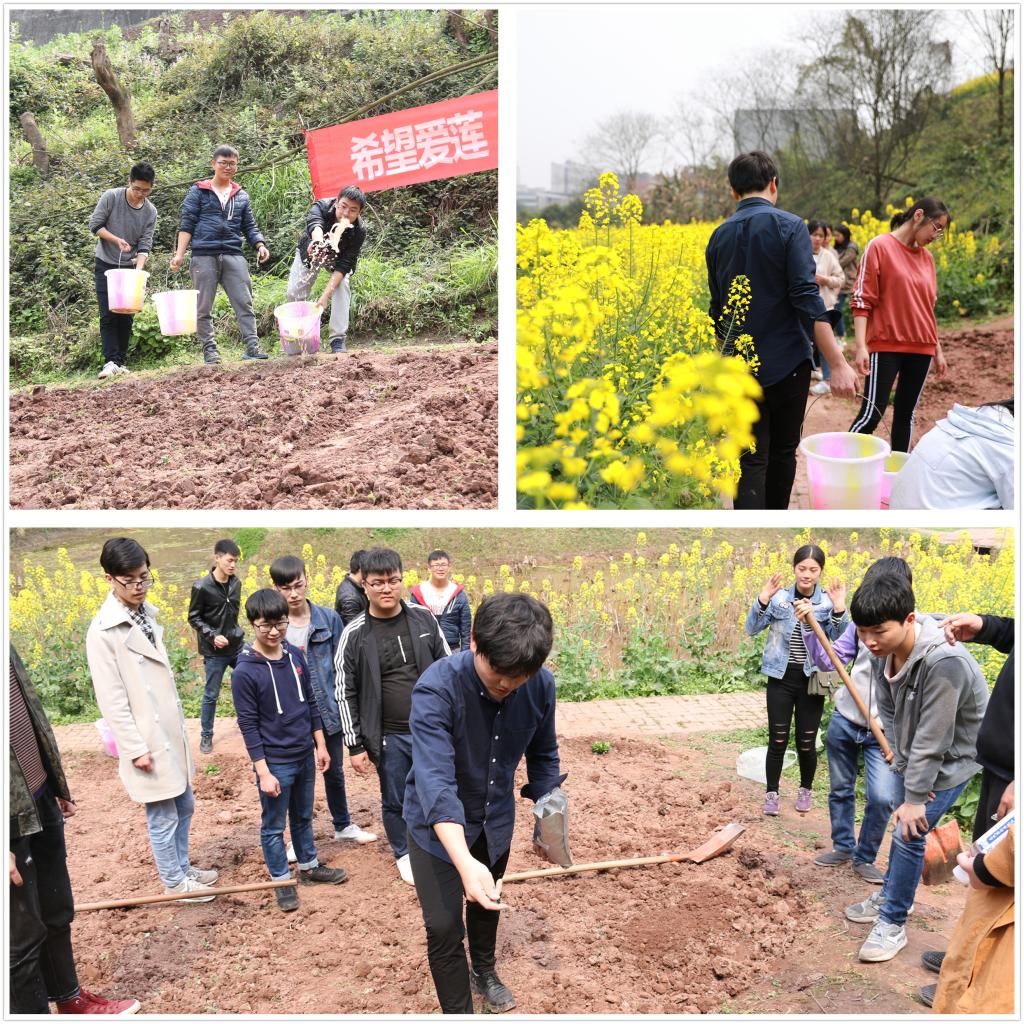 大地回春,绿化家园。爱莲书院全体干部干事及花卉协会成员于3月13号中午12点在中德果园集合,开展了“希望爱莲· 种下梦想· 美化家园”的植树节特别活动。主题简单明了,一条红色的横幅,几把锄头,三五成群,脚采赤色的土地,金色的日头在头顶照耀,泥土的芬芳的空气中环绕,怀揣赤子之心,共同践行“书院是小家,移通是大家”的家文化理念。