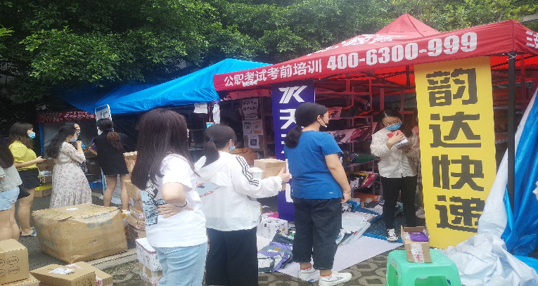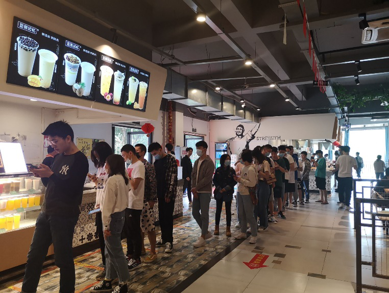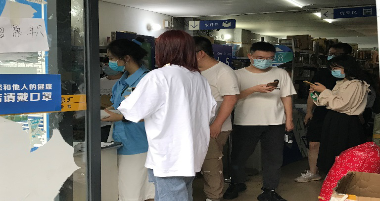 快递领取点同学们井然有序的排着队