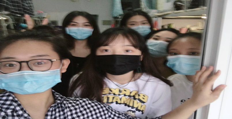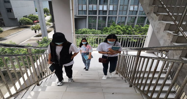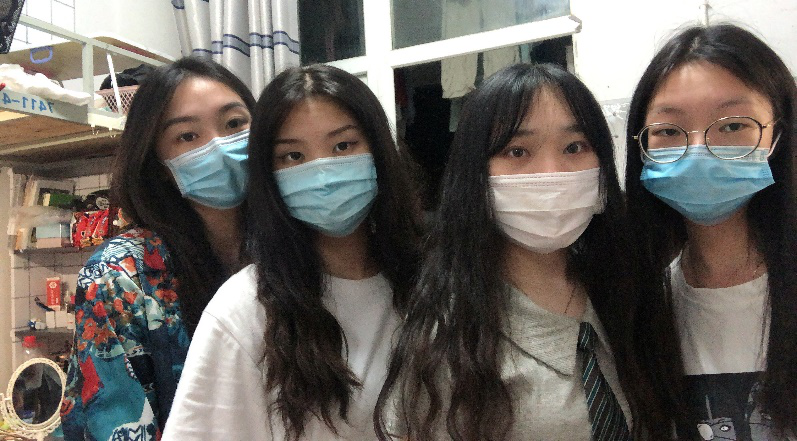 上课路上同学们都带着口罩