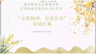 弘扬志愿精神,争做时代新人。5月20日,由我院社团活动部主办的第一届朗诵比赛圆满落幕。本次比赛以“志愿精神,由我传承”为主题,在进一步丰富学生课余活动,弘扬志愿服务精神,增强志愿服务意识的同时,鼓励学生能够勇敢表达、大声表达,提升自信能力。