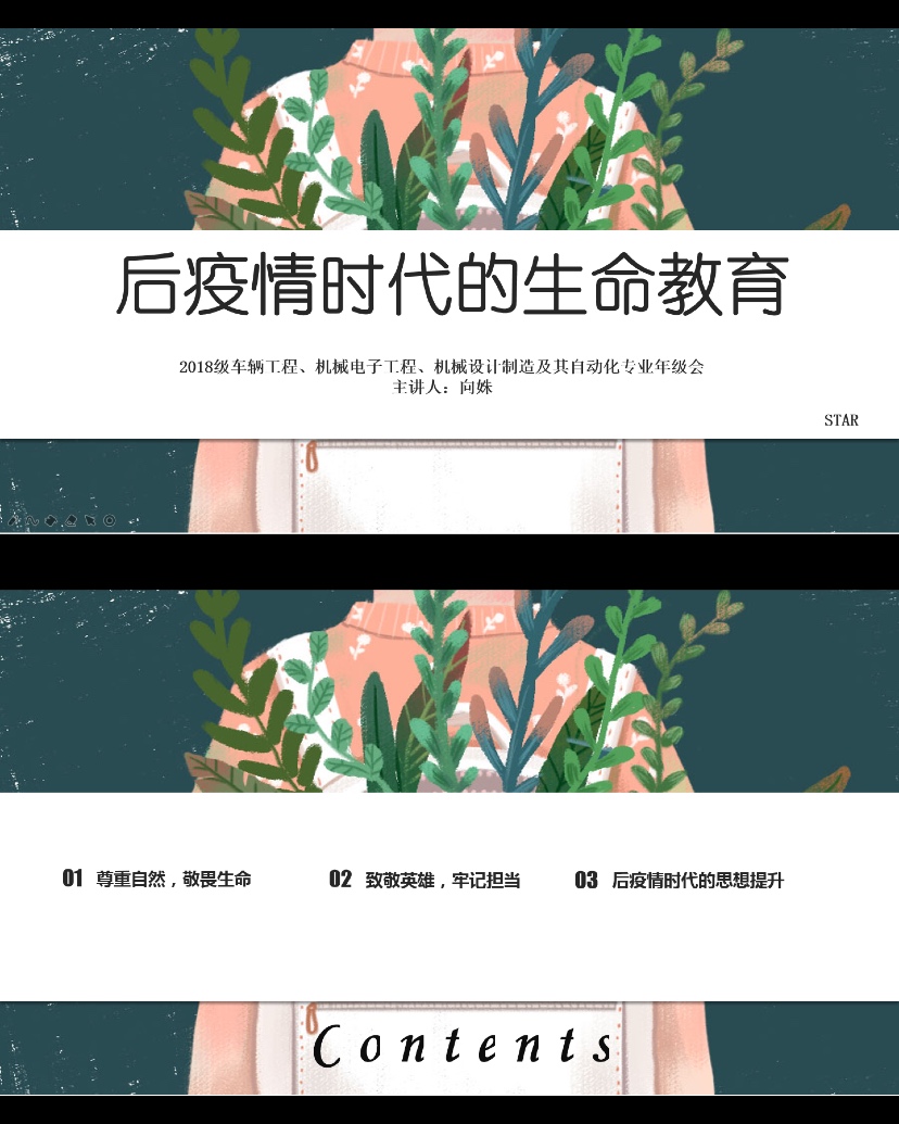 病毒的悄然而至,使每个人重新审视生命的意义,也开始正视生命这一严肃话题。2018级辅导员向姝结合后疫情时代,以“疫情后的生命价值观”为主题开展生命教育主题年级会。