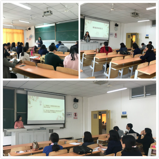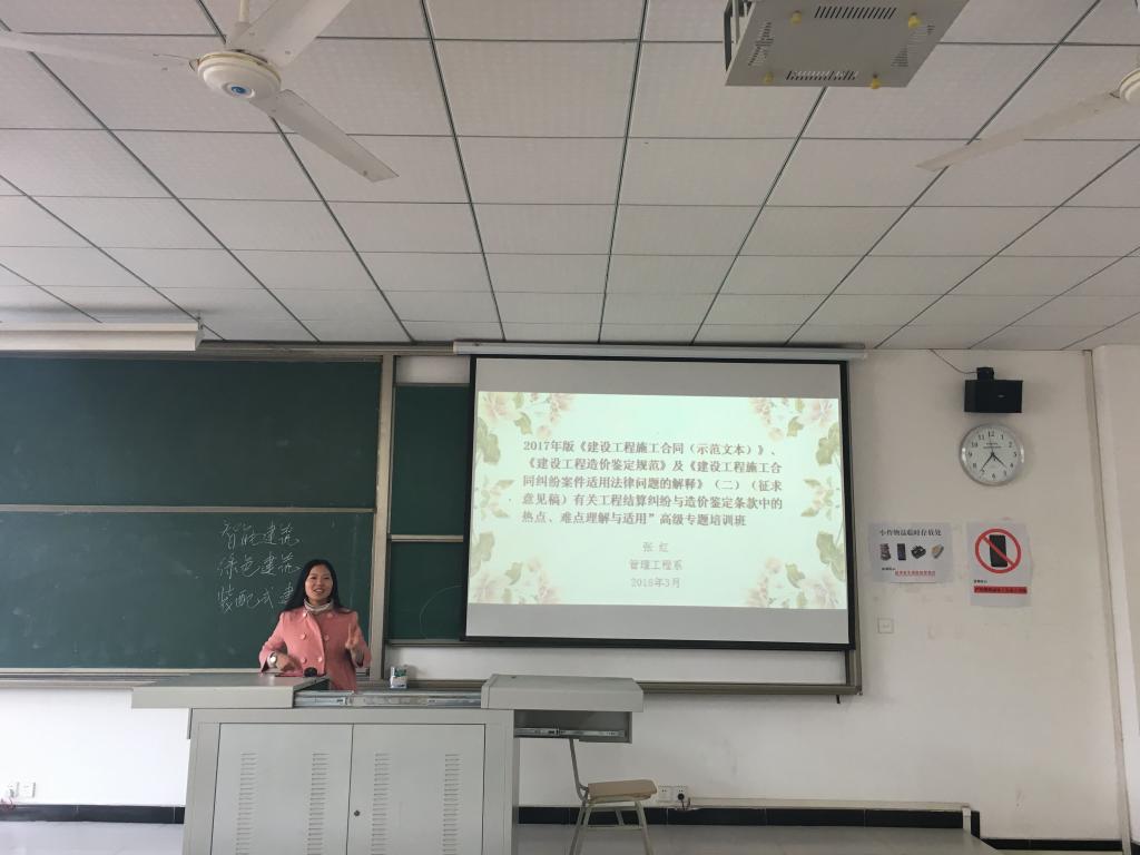 为推动我院工程管理专业人才培养与行业的有效对接,响应学院专业人才培养理念,创新工程管理专业教育,提升教师教学质量,在学院领导的大力支持下, 寒假期间,管理工程系张红老师应邀参加《造价及2017年施工合同解读》高级培训班,曹友露老师带领工程管理专业两位同学到校企合作单位的实体项目进行顶岗实习。3月14日,两位老师就学习收获向全体老师进行了分享。