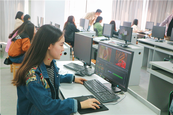 上午8点-11点45分,是生动有趣的专业课时间。作为广播电视编导专业的大三学生,崔琴对自己的课业很喜爱,也乐于投入其中。“我最喜欢剪辑课,看着一个个零碎的镜头在自己手中被有逻辑的串联起来,我仿佛感觉自己是一个魔术师,用镜头描绘出艺术,用影片创作出‘生命’!”