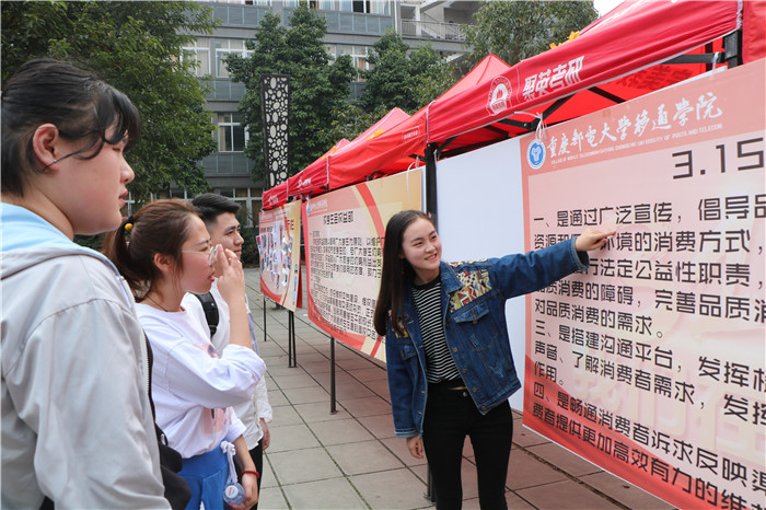 青春活力的社团氛围,是追求个人发展的群体价值取向。下午2点45分,崔琴来到一二教广场,今天是“3.15国际消费者权益日”,积极参与社团活动,也是她的爱好之一,她乐此不疲的为路过的同学讲解着消费者的权益,还不时与同学们展开讨论,放松自己的身心。