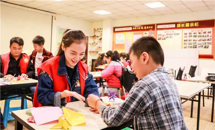 下午4点30分,学府中央“四点半课堂”开始了,该课堂结合社区实际情况每周星期一、三、五下午开设,主要为社区留守儿童开展课业辅导、绘画、舞蹈、礼仪等方面培训,以及感恩文化、市民文化等课堂,积极传播社会主义核心价值观。今天崔琴要教小朋友做手工。“你跟着姐姐折”“把这里对折,对了,叠得很好”在孩子面前,崔琴时刻保持者微笑,快乐地享受着志愿服务带来的快乐。